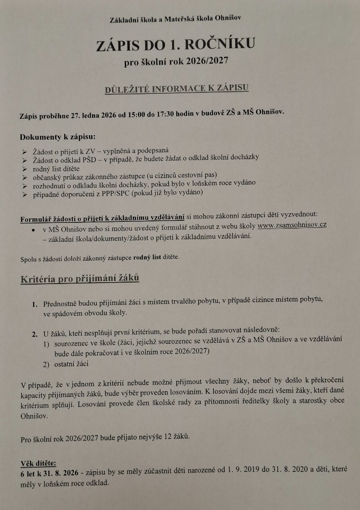 ZÁPIS DO 1. ROČNÍKU