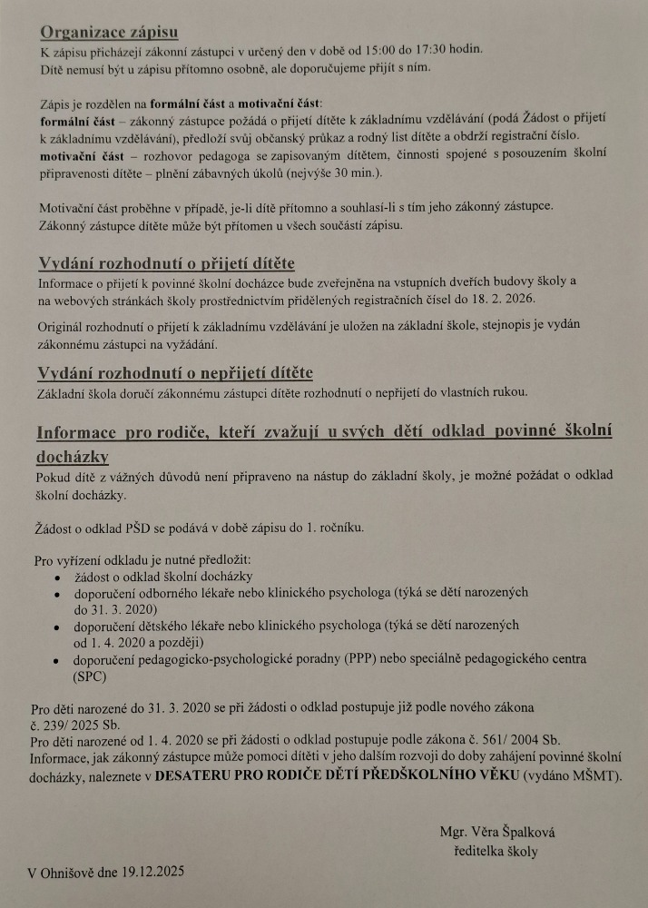 ZÁPIS DO 1. ROČNÍKU