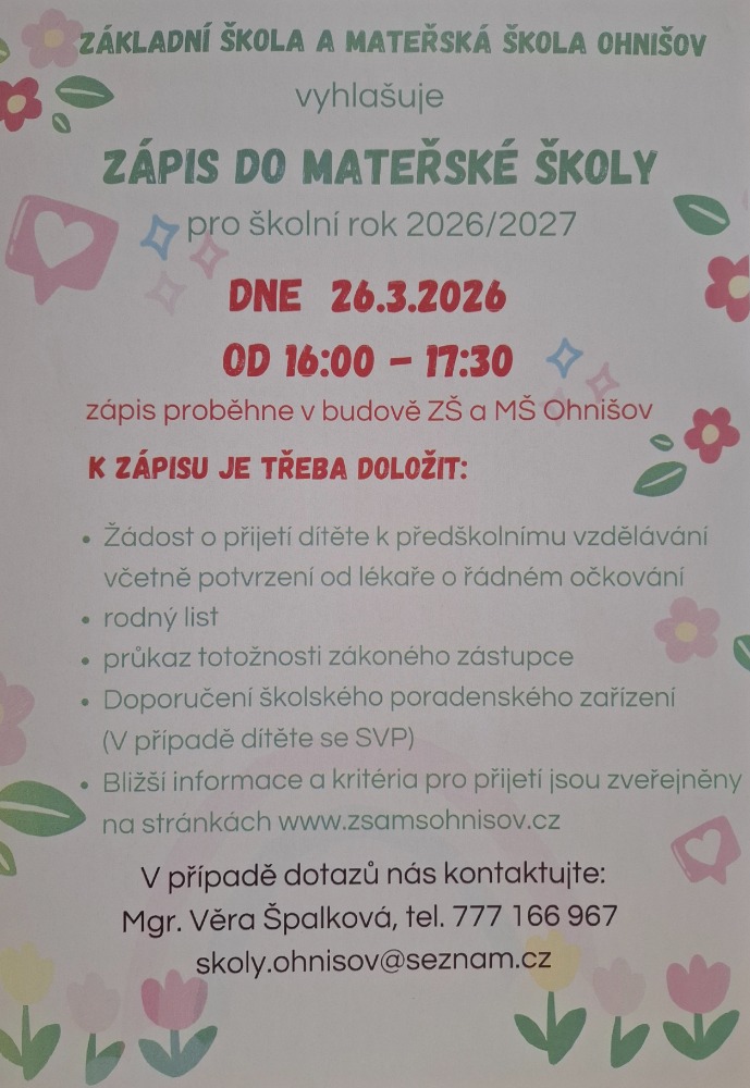 ZÁPIS DO MATEŘSKÉ ŠKOLY